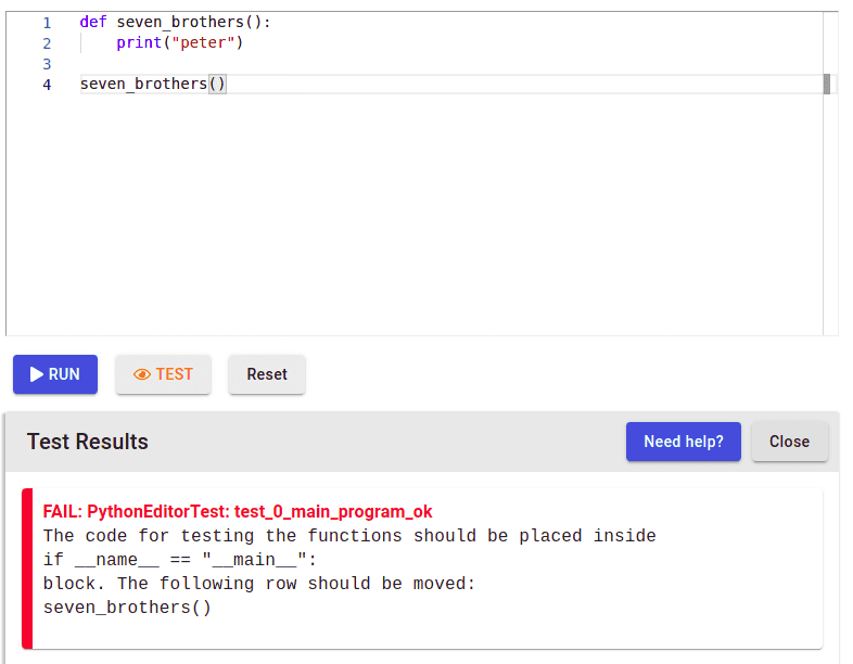 We have already used functions such as len, print and input in our programs. These are functions built into Python, and so they are always ready at our disposal, no matter which environment we are programming in. However, it is also possible to define your own functions.