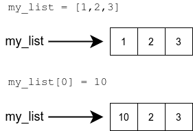 The first example changes the contents of the referenced list. The second example replaces the reference to the original string with a reference to another string. The original string is still somewhere in computer memory, but there is no reference to it, and it cannot be used in the program any longer.