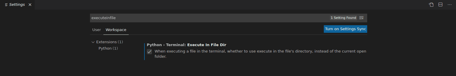 - Select the option under Python -> Terminal -> Execute In File Dir