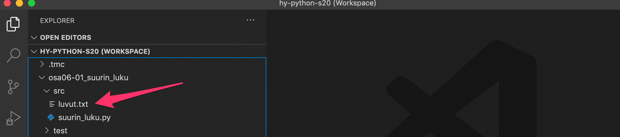 On this course we only deal with text files. All the files used will consist of lines of text. As an example, the Visual Studio Code editor we use on this course works with text files. NB: even though word processors such as Microsoft Word are usually used with files that contain text, Word documents themselves aren't text files. They also contain formatting information, and are encoded in a way that makes handling them in a program more complicated.
