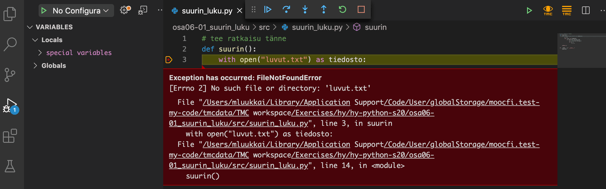 Using the Visual Studio Code debugger with programs which handle files will often result in a nasty looking error message: